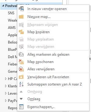 Ga naar uw mailbox in Outlook klik met de rechtermuisnkop op de